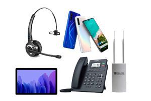 Tablets, smartphones, landlines, headsets, and back-end equipment.